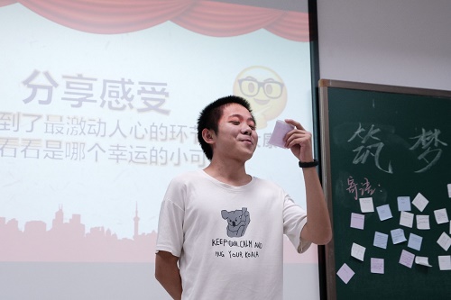 最后则是由两位老师进行总结发言。“……你们要做到的是做好本分,不畏困难。尤其是从高中来到大学这个阶段,你们要进行学习方式的改变,要培养完善的三观,这并不是一件简单的事情。”班主任吴振坤老师如是说。“我们要多去外面的世界看看,拓宽我们的视野。”刘松老师鼓励同学们,“青春是有无限可能的,要奋斗,要努力。”