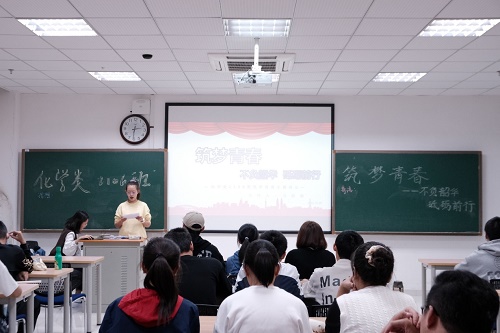 在主持人的随机抽取之下,同学们走上讲台,分享自己对理想与青春的看法。“热情”——希望用自己所学去保护生态环境,去改善家乡的教育环境;“无所畏惧”——能做自己想做的事情,不自怨,不害怕……这是化学类2106班的同学们第一次向班级同学敞开心扉谈自己的理想。“万物皆有裂痕,那是光照进来的方向”;“愿山河无恙,国泰民安。吾辈共勉”……来自他人的鼓励,令刚表达完自己远大理想的同学们愈发心潮澎湃,愈发坚定自己的理想。