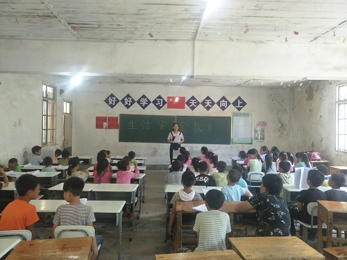 7月22日qy球友会“情系瑶乡,萤火助梦”教育扶贫三下乡实践团队在茅坳完全小学的日程进入了第二天。除开常规的国学经典诵读环节,今日开设的安全课与手工课也反响热烈。