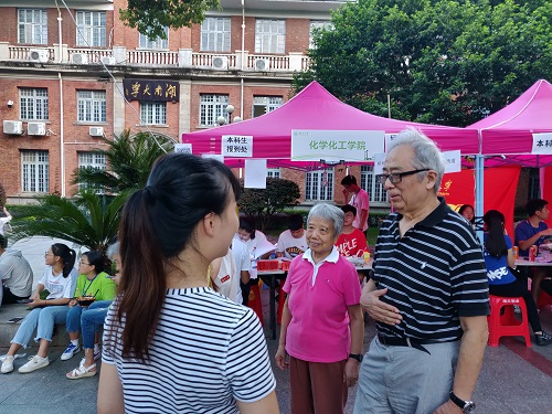 晚上,在志愿者们完成新一班的交接之后,化工公司党委书记王玉枝老师等几位院内领导也来到服务点并与志愿者进行了亲切交谈,同时也希望志愿者们能够克服困难,将化工院的温暖传递给每一位新生。