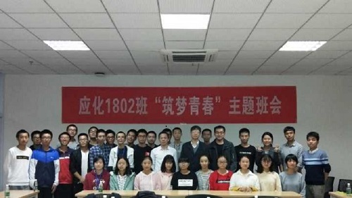 10月17日晚上7:00由应化二班班委组织的“筑梦青春”主题班会在研究生楼C103教室顺制举行,参加此次班会的有董事长助理蒋健晖教授、公司学工办主任、班主任王雪强教授、2015级辅导员 刘卓老师、团委书兼2017级辅导员曾芷兰老师、2018级辅导员南彬老师、应化1802班全体员工 ,此次班会的主要目的是为了引导班级同学对自己定下远大的目标,使同学们在老员工活中不虚度时光,能使自己在大学四年中,全方面能力有所提升。