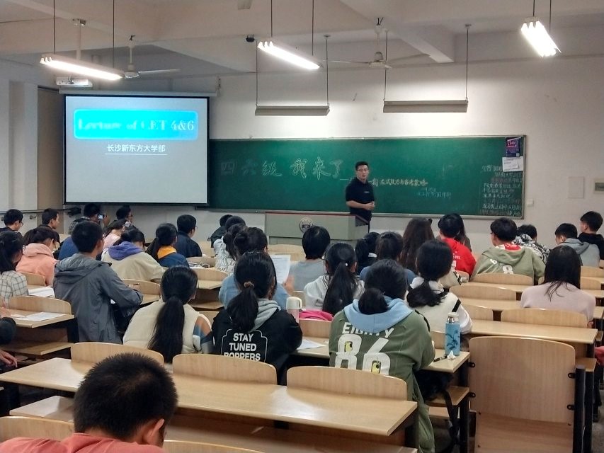 首先,梁老师为同学们进行了四六级相关方面知识的讲解,强调了四六级考试之于就业以及考研,保研的重要性。他用活泼生动又简洁明了的语言,让同学们对四六级考试的考试顺序及分数分配有了更为清楚的理解。