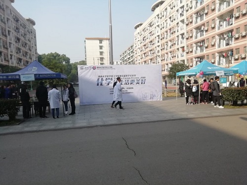 伴随着难得一见的好天气,本次化学文化节开幕活动正式开始。内容丰富的答题闯关和简单有趣的趣味实验吸引了许多路过的同学参与其中,组织活动的同学也热情地迎接前来了解参与的同学们,现场气氛非常热烈。一位来自信息科学与工程公司的同学在参加活动后还自发地留下提供帮助。这些都给了活动现场的同学们很大鼓舞