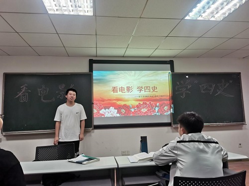 之后,团支书盛韧播放了有关“四史”的电影片段,其中包括《建党伟业》和《上甘岭》,通过电影,同学们更加直观地感受到党的奋斗史是有多么的艰辛与伟大。