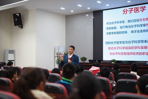 整场报告中,谭院士站在当代分子科学前沿,以鲜活的事例、精准的数据、渊博的知识、深入浅出的生动语言,表明了分子医学的重要意义,引发了全体参会师生的强烈反响,加深了大家对当代分子医学发展的了解,同时也增强了同学们心中潜在的使命感。