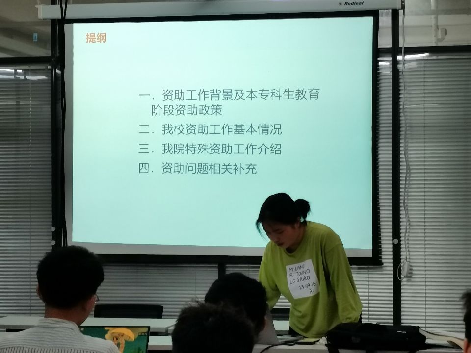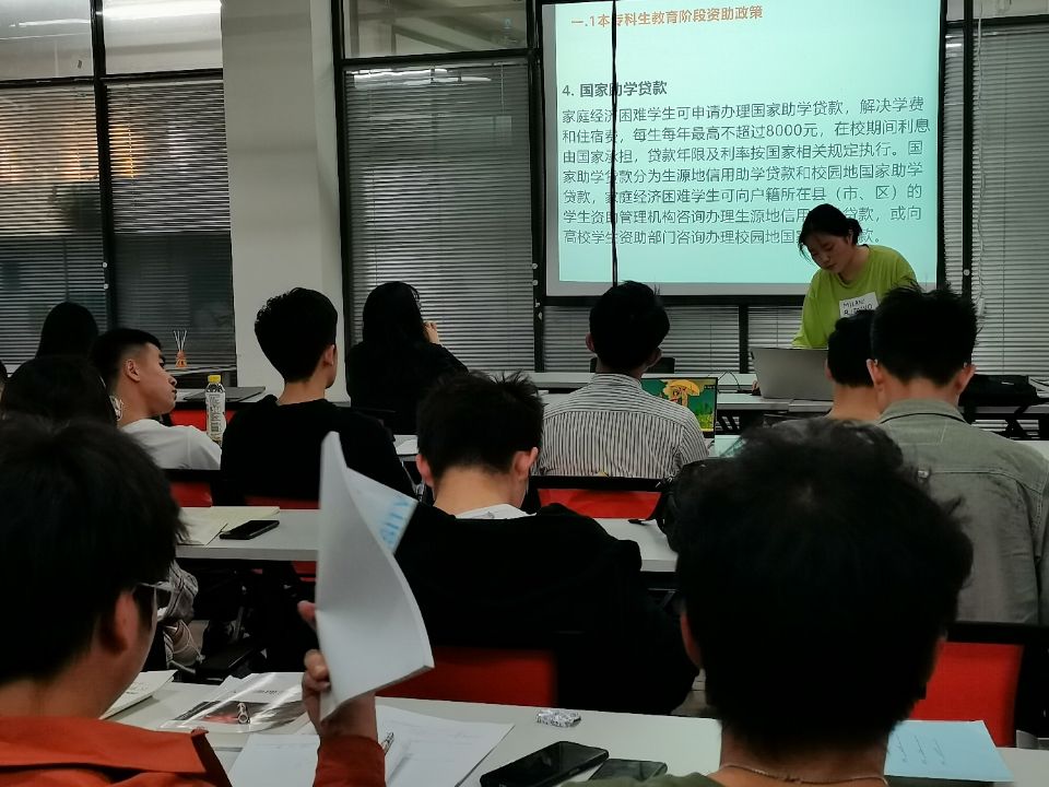 随后,王亚楠同学就资助工作背景,公司资助工作情况和相关问题进行了具体介绍,主要介绍了与同学们息息相关的奖助学金,国家助学贷款,资助政策与内容,资助审评工作流程,勤工助学兼职岗位,公益岗活动等等。同时,她也与同学们分享了自己曾参与的公益岗活动,同学们也感受的活动的趣味性和具体内容,之后,王亚楠同学提醒在库生参与公益岗活动,鼓励同学们积极参与。