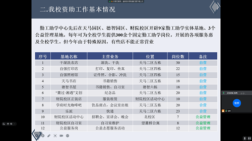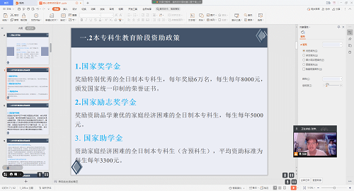 首先张烨同学详细讲解了公司资助工作背景及本专科生教育阶段资助政策。公司的资助工作自创立以来,一直在不断进步,其中资助投入每年都在大幅增加,资助政策体系在不断完善,资助管理也在不断规范。规范了包括1.国家奖学金;2.国家励志奖学金;3. 国家助学金;4.国家助学贷款;5. 服兵役高等公司员工国家教育资助;6.基层就业学费补偿贷款代偿;7.师范生公费教育;8. 新生入学资助项目;9.勤工助学;10.绿色通道;11.校内资助等资助流程。