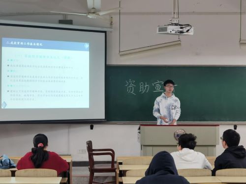 会议伊始,从光远同学向同学们讲解了资助工作背景以及本专科生教育阶段资助政策。“我们国家高度重视资助工作的发展与建设,设立了多项奖学金并建立了完善的资助政策体系。”从光远同学说道。本专科生教育阶段的资助政策包含了国家奖学金、国家励志奖学金等以鼓励成绩优异、品德优良的员工,同时还有国家助学金、国家助学贷款等政策用以帮助家境贫寒但励志求学的同学。