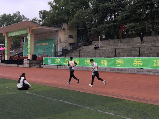 2016年10月30日,虽然校运会已进行到了第三天,也接近了尾声,但是同学们积极进取,为院争光的热情不减。而今天代表球友会参加男子10000米决赛两位运动员,1806号任浩和1813号邓弘立,为同学们树立了切身实践体育精神的优秀榜样。