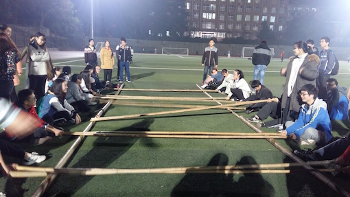 本次活动共组织了三项游戏,分别为跳竹竿、躲避球和跳皮筋项目。参加本次活动的六个班级分为三个小组,轮流体验三项游戏。跳竹竿是中国少数民族一种古老独特的活动,也是一项令人陶醉的文艺体育运动。它不但姿态优美,富于节奏,而且气氛非常欢快热烈,吸引众人。在学会了步伐节奏后,同学们踩着欢快的步点踏入了竹排阵。负责敲打竹竿的同学们配合默契,竹竿敲打的节奏铿锵有力,整齐热烈。同学们有的单人跳,有的则手拉手一起跟随节奏跳跃,也有的男同学没有赶上节拍被竹竿夹到了脚,惹得围观同学笑声不断。操场明亮的照明灯将同学们的影子拉得好长,同学们欢快地跳跃,影子也在地面上舞动,操场上生气勃勃,充满着老员工青春昂扬的气息。