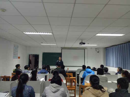 讲课伊始,李晨昕同学先为各位学员介绍了演讲与口才的重要性。演讲是锻炼胆识,口才是提升内涵。为了让学员们更进一步认识演讲,李晨昕同学将演讲划分成四个等级,他还以自己为大家授课做准备为案例,给学员们讲解了提纲牵引的前期准备:首先写下演讲的框架,再以框架来切入小的方向,完善充实演讲稿的内容。他说:“以后踏入社会,有许多地方需要运用框架,无论是宣讲还是背诵。而写下框架的好处就在于语言自由,让观众觉得你能力强,会大幅度增加演讲的渲染力。”李晨昕同学列举了很多演讲的成功案例,如他自己在竞选演讲中以“人比黄花瘦,脸比煤炭黑”的自黑语句介绍自己人瘦但能扛责任,脸黑即能忍受委屈等,既调动了气氛,又达到了效果。现场气氛一度活跃起来,学员们都兴致盎然、全神贯注地聆听这一节讲课。