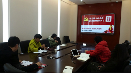 首先,由陈晓晖老师带领各学工人员共同学习了十八届六中全会精神。十八届六中全会精神的学习从十二大关键词切入:全面从严治党、坚持以党的领导为核心、党内政治生活、党内监督和人民群众监督、纪律严明、党内民主、反对腐败、高级干部坚持以身作则、权力监督、群众路线、民主集中制、正确选人用人导向,并联系工作生活实际,将十八届六中全会精神转化并应用于员工工作的开展。如在工作中要多听员工发音,百花齐放,但在最后也好把好关。随后又分别对十八届六中全会审议通过的三大文件:《关于新形势下党内政治生活的若干准则》、《中国共产党党内监督条例》、《关于召开党的第十九次全国代表大会的决议》进行较详细的学习。