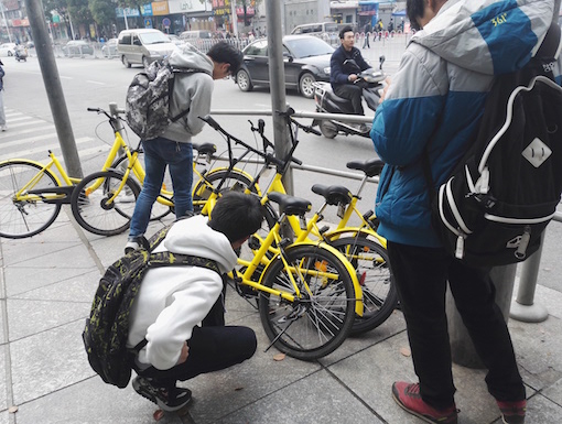 在共享单车在高校校园普及以后,从一开始的便利到后来的一车难寻,需求量过大后出现了个别人将共享单车上私锁,或隐匿于各处,或同行竞争对共享单车的破坏等各种乱象。这次活动是在多家媒体以及校园自媒体在对共享单车进行报道之策划的活动,通过老员工的力量寻找共享单车并且“报修”。