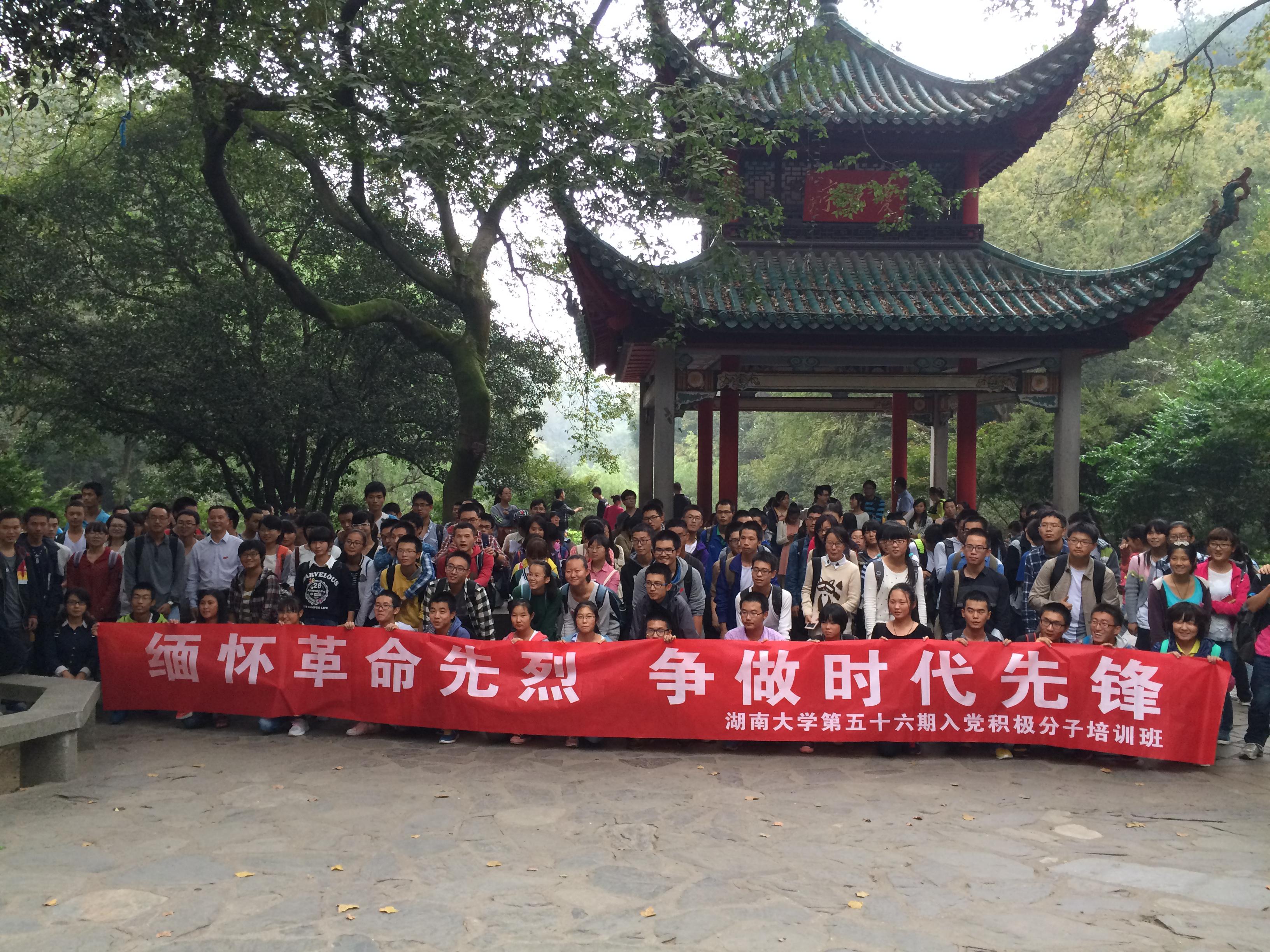 2014年10月21日,在初秋微凉的空气里,化工院全体入党积极分子在老师的带领下,来到了文化古山——岳麓山,在毛主席亲笔提名的爱晚亭下,龙兵老师再次满怀激情地为大家讲解中国抗战史,进行了第二次党课教育。