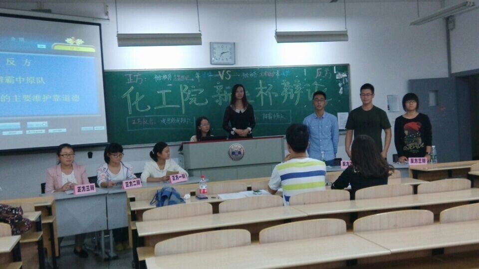 2014年10月24日晚七点,球友会新生杯辩论赛半决赛在综合楼305拉开了序幕。比赛一共两场,历时两个半小时。最终,化学三班和化工一班各自击败了自己的对手,一起挺进了决赛。至此,球友会新生杯辩论赛半决赛圆满结束。