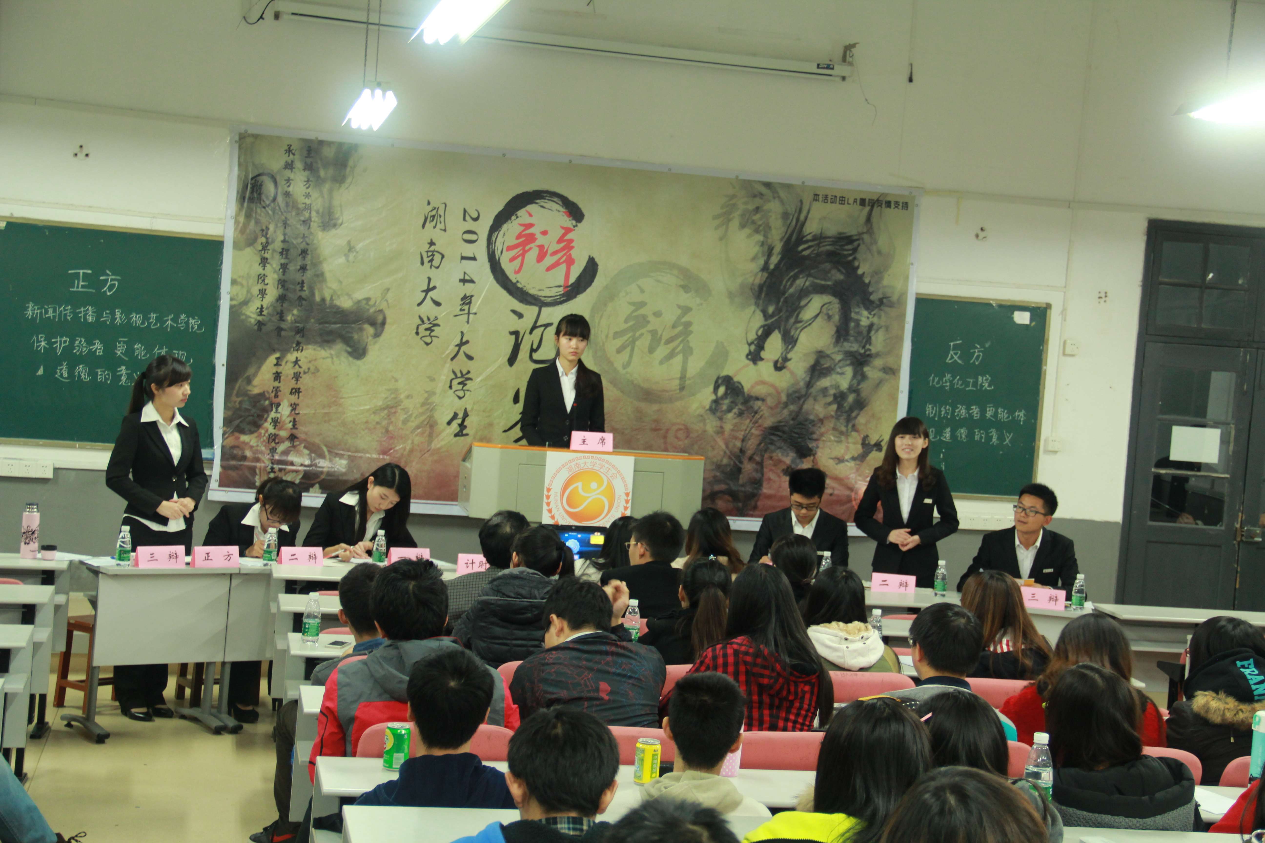 8点不到,东楼311里已座无虚席,观众们都期待着辩赛的开始,辩手们也在紧张地准备着。本场辩论赛以“保护弱者比制约强者更能体现道德的意义还是制约强者比保护弱者更能体现道德的意义”为辩题。首先主席宣布双方辩手进场并介绍自己,代表化工院的三位分别来自12级的吴天忍,13级的丛珊珊,14级的张超豪的辩手以顺口溜的形式介绍了己方持有的观点并介绍了自己,给观众们留下了深刻的印象。