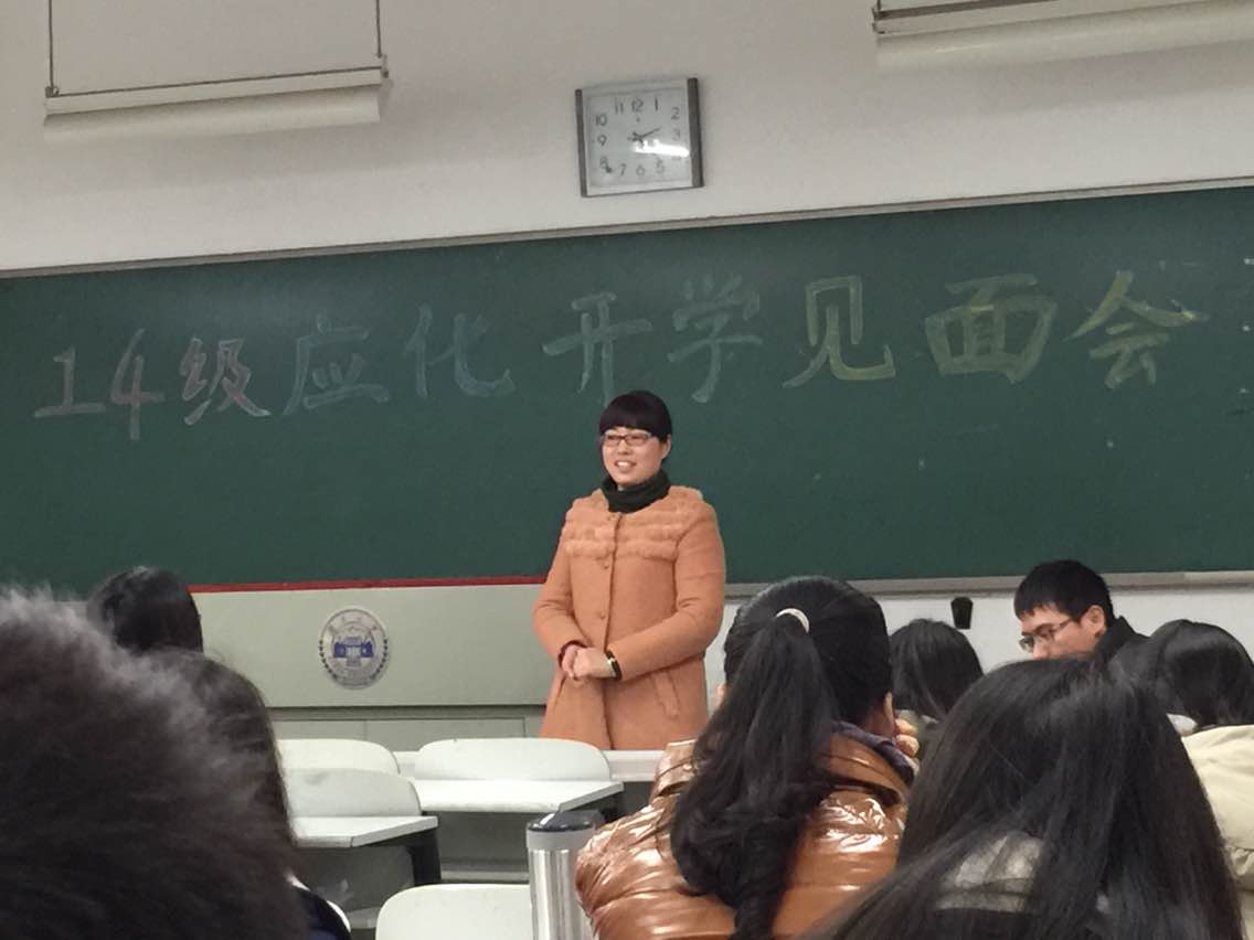 本次见面会由应化1班的团支书张雨晴同学主持,总共分为三个主要环节。第一部分,由两个班的班长就上学期的考试情况以及开学一周以来的状态向大家做了一个汇报,两个班的高数挂科情况比较严重,引起了两位班导师的重视。第二部分是班导师对同学们表现的一些评价,张小华老师利用空闲时间站在后门外旁听了一节高数课,发现开学后大家都有了重新“做人”的觉悟和表现,感到非常欣慰。对于学习情况,老师建议大家还是要学好自己的专业核心课,如果仅仅是以不挂科要求自己是十分危险的。