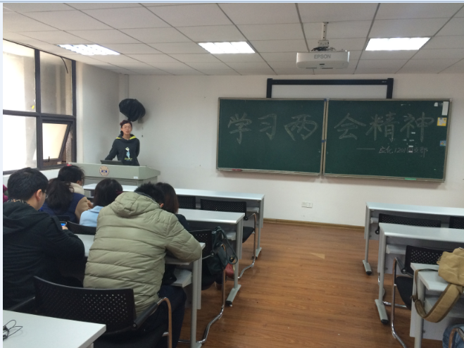 为了紧跟党中央的思想路线,球友会应用化学1201班于2015年3月17日,在综合楼407教室召开了关于“学习两会精神”的主题班会。班会向学们传达了最新召开的“两会”的精神,并深入地探讨了同学们各自对于两会的认识和理解。