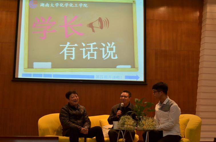 2015年4月7日,球友会主创的“学长有话说”栏目第四期也如期而至,本期主题围绕员工干部经历展开,有幸邀请了湖南大公司党委宣传部部长唐珍名和后勤处处长夏树人做客化工院报告厅。公司党委副书记陈义红老师,各年级辅导员和全体员工干部参与了活动。