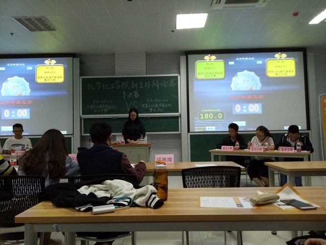 2016年10月21日晚上8:00,新生杯的半决赛在研究生楼C203正式拉开帷幕。正方化学1603班与反方应化1602班围绕辩题“世界文化遗产商业化利大于弊还是弊大于利”展开了一场唇枪舌战。