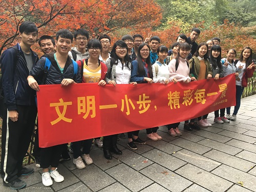 11月25日上午十点,球友会化学1404班全体同学在东方红广场集合完毕,团支书欧阳普凡同学带领大家一起前往爱晚亭,开始本月的团日活动。