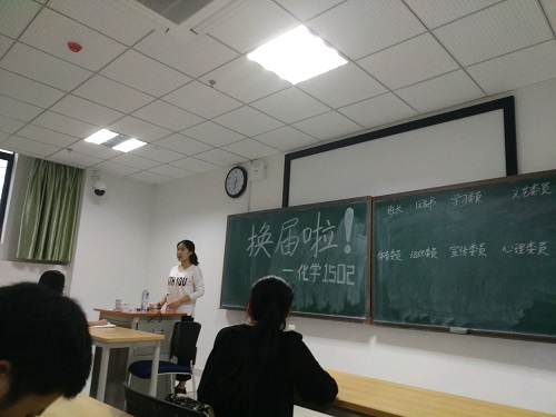在简单投票统计活动之后,各新班委也尘埃落定。班导师刘志刚首先对他们表达了祝贺,同时也希望他们今后在完成自己学习任务的基础之上,能够承担起支撑化学1502班更好前行的责任与使命。刘老师语重心长地向同学们叙述了在我国改革开放新时期,作为先锋知识分子的当代老员工的历史使命与社会责任,激励全体同学以此为契机,更加发愤图强,脚踏实地,为自己为社会的发展贡献自己的力量。