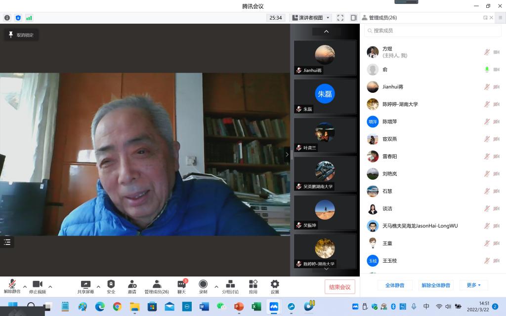 接着,老党员俞汝勤院士跟大家分享了他多次参加两会的经历。他就政协委员的重要作用,全国两会精神等方面做了发言。俞老师80多岁高龄,仍然持续关心国际国内重大事件,他的与时俱进的精神鼓舞了在场的每一位党员老师。
