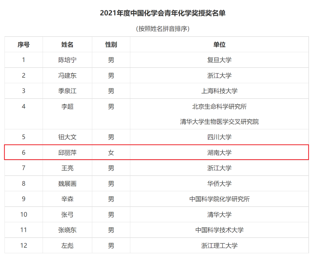 微信:唯一女性!邱丽萍教授入选“中国化学会青年化学奖”https://mp.weixin.qq.com/s/SpGIFN2EdZdbdSYX-VR5_g