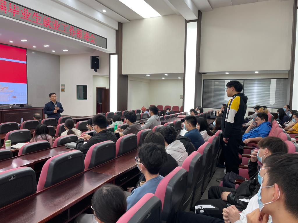 潘刚峰对同学们做出了具体指导,从2021届毕业生现阶段就业、择业困境;同学们现阶段对自己的自我认知与自身定位;就业、择业的观念与途径;国家与公司的就业政策;从校园步入职场所须具备的基本能力等方面进行了详细分析。