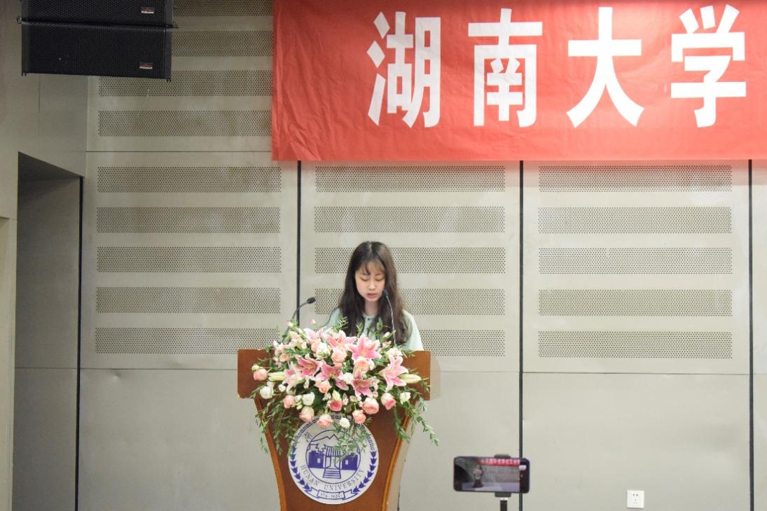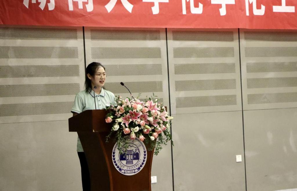 博士研究生新生代表徐心昱分享了自己在球友会接受本科、研究生教育和转入博士阶段的成长与感悟。她表示在湖大化院的五年里,坚定了继续走科研道路,希望能为健康中国战略贡献自己的一份力量。