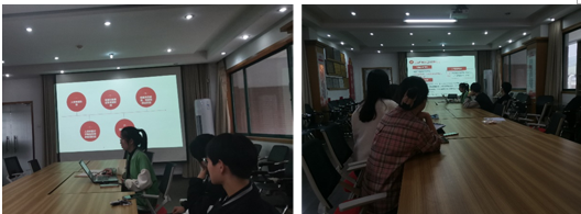 图为 党建服务中心成员学习讨论千亿球友会发展党员工作流程并发表看法