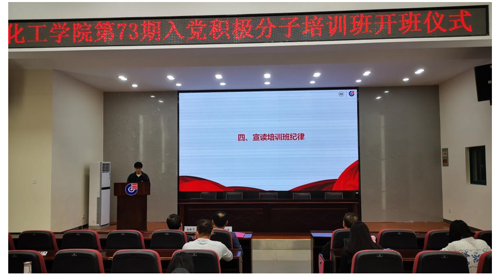 大会第三项,公司党委党建服务中心成员周梦真同学宣读此次培训班的学员守则和纪律。培训班纪律要求大家严于律己,服从管理,坚定理想信念,保持政治定力,不断提升完善自我,争取早日成为一名真正的共产党员!