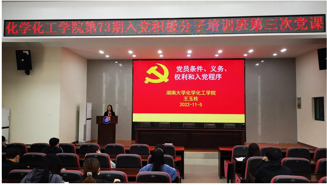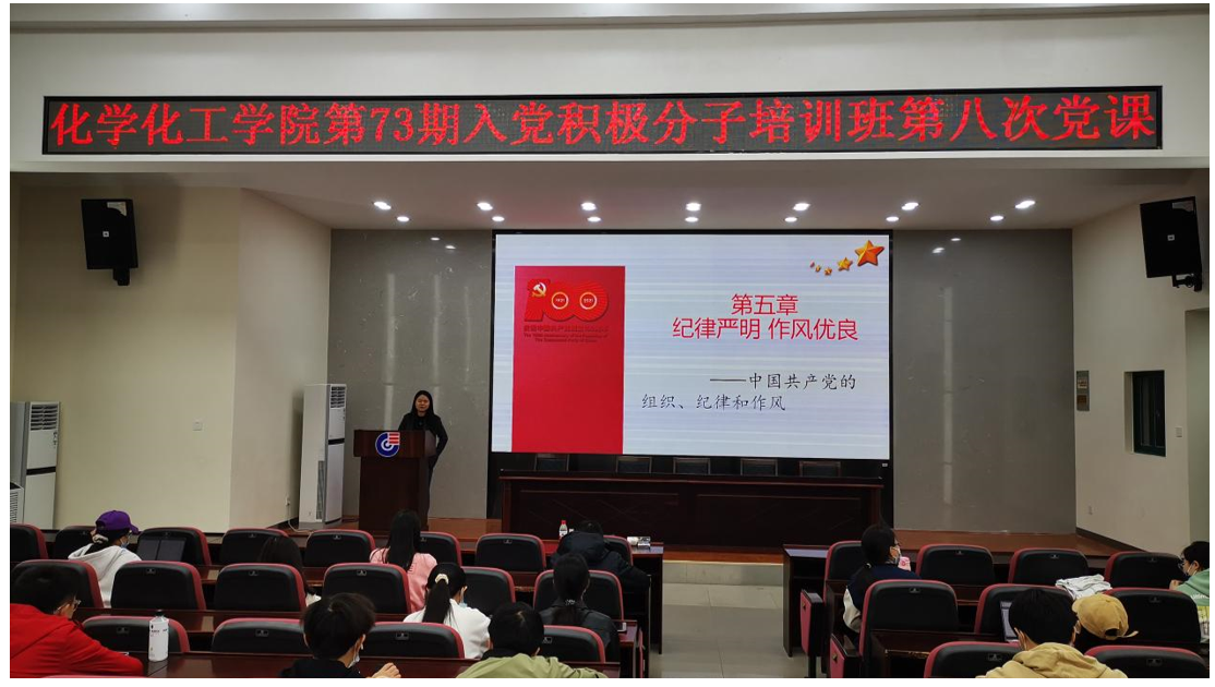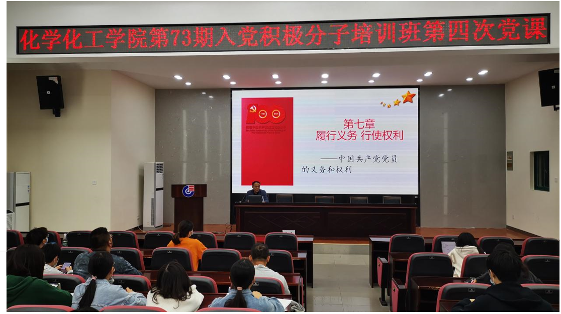 为贯彻落实《中国共产党发展党员工作细则》有关规定,进一步加强对入党积极分子的培养、教育和考察,提高公司入党积极分子的思想政治素质和政治理论水平,教育引导老员工入党积极分子端正入党动机,激发同学们的爱党爱国情怀,2022年11月4日至11月12日,公司党委分党校在新化工楼D区报告厅为73期入党积极分子培训班开展了八次党课培训。