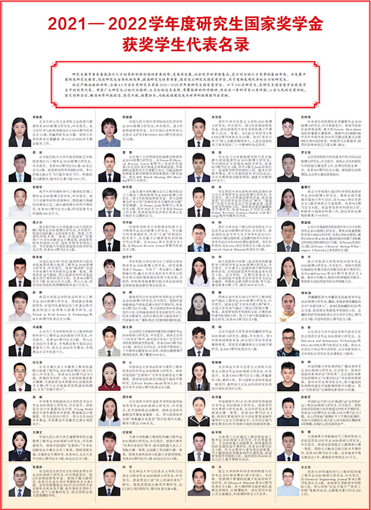 《人民日报》刊登的100名研究生国家奖学金获奖员工代表是全国4.5万名2021-2022学年度研究生国家奖学金获得者中的优秀代表。