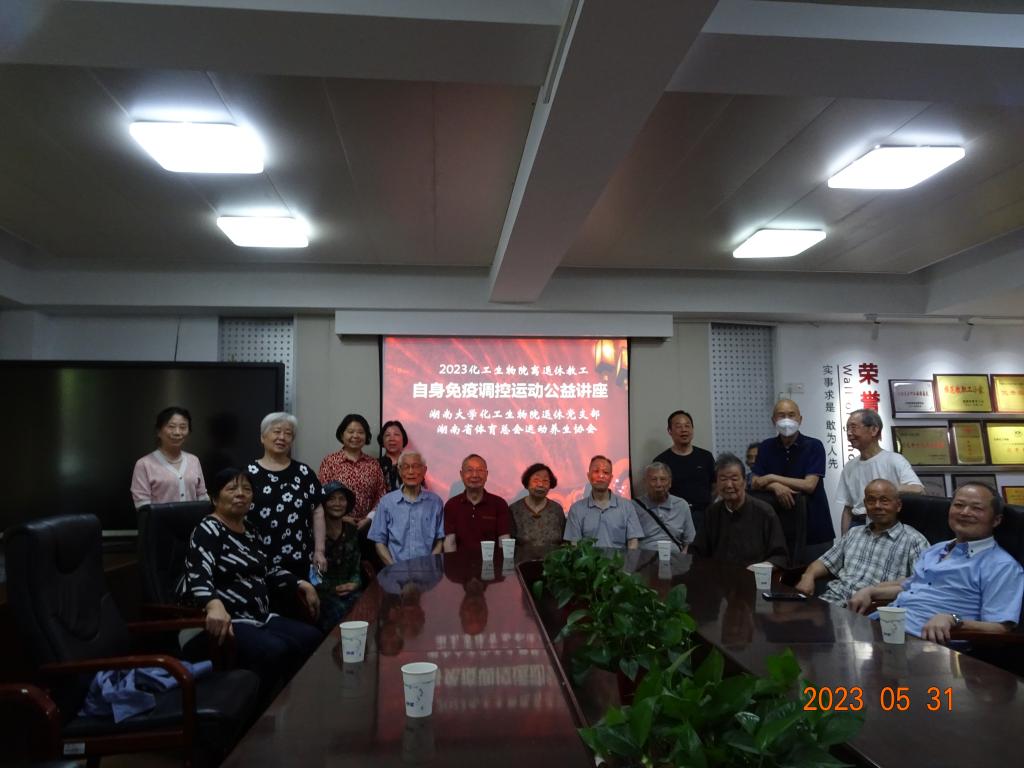 5月31日,化工生物院退休党支部为关爱两院离退休教工身体健康,组织举办了一场《自身免疫调控运动》公益讲座。讲座由生物公司退休教师、湖南省运动养生协会常务理事谭宏副教授主讲。本次活动也得到了湖南省体育总会运动养生协会的支持。