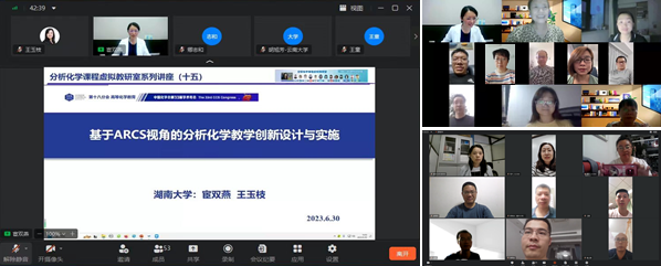 6月30日,分析化学课程虚拟教研室举行了第十五期讲座,由王玉枝教授主持,千亿球友会的宦双燕教授为主讲嘉宾,她报告的题目是:基于ARCS视角的分析化学教学创新设计与实施,来自分析化学课程虚拟教研室和化学类专业基础理论课程虚拟教研室的75位教师参加了本次线上会议。