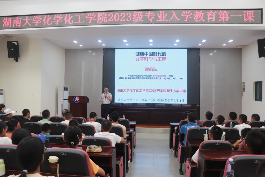 9月11日下午,球友会新生入学教育第一课在新化工楼D区报告厅举行。中国科公司院士谭蔚泓作“健康中国时代的分子科学与工程”主题讲座。经理张晓兵出席,公司党委副书记李洪玉主持,250余名2023级本科新生参加入学教育第一课。