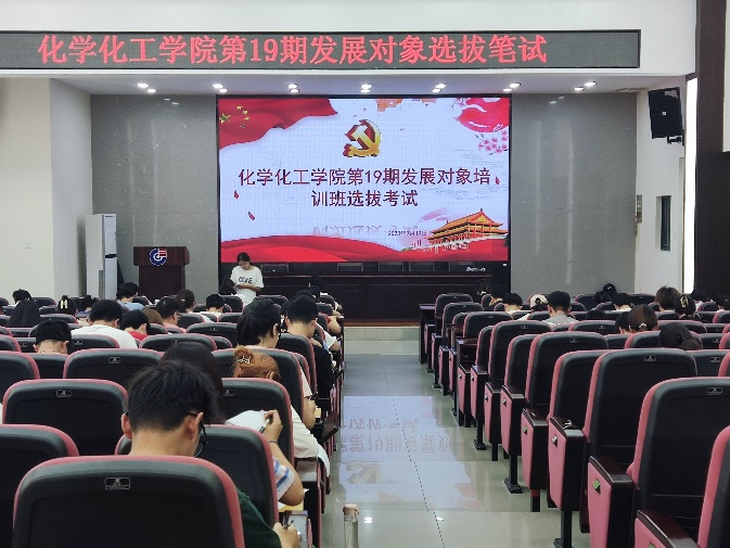 为深入贯彻《中国共产党章程》和《中国共产党发展党员工作细则》,加强对员工党员发展对象的培养教育,考察其政治觉悟、思想品质、党性修养是否符合党员标准,严把发展对象“入口关”“质量关”“程序关”和“责任关”,公司于2023年9月19日中午12点半在新化工楼D区报告厅组织开展了第19期发展对象培训班选拔笔试,101位本硕博员工参加了此次发展对象选拔笔试。