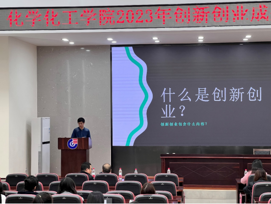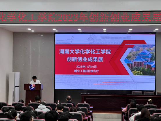 11月10日上午9点,公司在新化工楼D区报告厅隆重举办2023年度创新创业成果展活动。活动由金波老师主持,出席嘉宾包括经理张晓兵,副书记李洪玉,副经理李永军,竞赛指导教师代表李文生、李昆,公司分团委书记蒋晓洁,辅导员何妮翰、南彬。近200位研究生、本科生参加。活动包括公司近五年创新创业回顾、经理讲话、教师代表发言、员工代表发言等环节。