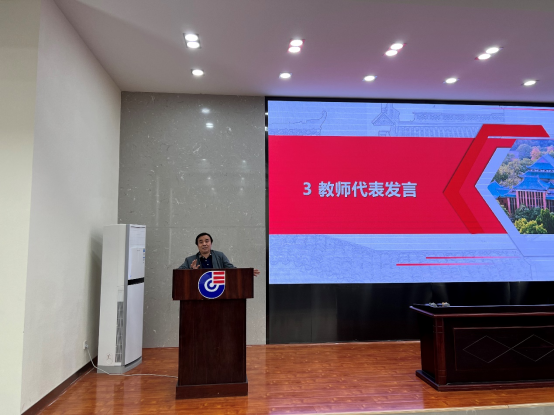 员工代表李稼睿从个人参加互联网+和挑战杯两个赛事的经历为切入点,从创新创业中所获得的书本上学不到的知识、如何进行创新创业、从创新创业获得什么等等进行了心得分享,为同学们参加创新创业加油鼓劲。