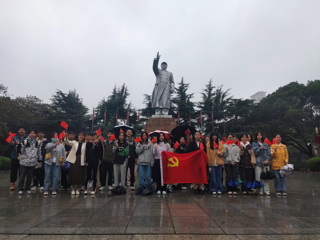 上午8:10,同学们在五食堂前集合签到并领取活动所需物资,然后一起乘坐大巴前往长沙党史馆,同学们在参观党史馆的同时寻找“寻宝打卡点”完成打卡任务,完成打卡任务的同学起(终)点工作人员处登记排名,活动结束后于进门处毛主席像处合影留念。