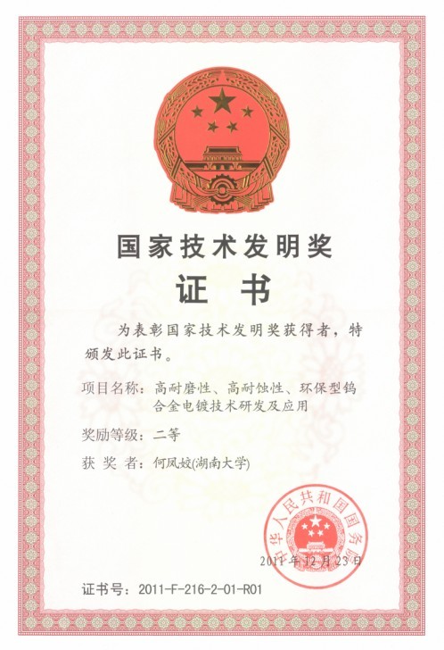 公司王柯敏教授主持完成的成果“纳米尺度和分子水平上生物信息获取的新原理与新方法”获国家自然科学奖二等奖(第一完成单位);何凤姣教授主持完成的成果“高耐磨性、高耐蚀性、环保型钨合金电镀技术研发及应用”获国家技术发明奖二等奖(第一完成单位);罗胜联教授作为第二完成人参与完成的成果“基于微生物特异性的重金属废水深度净化新工艺”获国家技术发明奖二等奖(第二完成单位)。王柯敏教授、何凤姣教授上台接受国家领导人的颁奖。会后,中共中央政治局委员、国务委员刘延东等国家领导宴请部分获奖代表并进行了座谈,勉励他们以获得国家科技奖励为新起点,继续发扬求真务实、勇于创新的精神,围绕国家战略需求,瞄准世界科技前沿,顽强拼搏、协作攻关,努力创造更多的科技创新成果,为转变经济发展方式、建设创新型国家作出新的更大贡献。何凤姣教授应邀参加了座谈会。