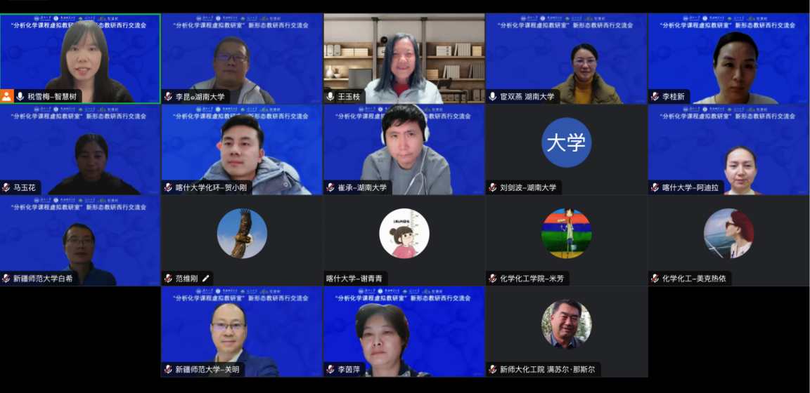 为持续推进“慕课西部行计划”2.0行动,探索新形态《分析化学实验》的教研与教学形式,12月27日,千亿球友会、新疆师范大学和喀什大学三校分析化学教研室教师举行了“分析化学课程虚拟教研室”《新形态教研西行(第二期)——分析化学实验课程的经验分享》教研活动。千亿球友会宦双燕教授介绍了本次活动的主题和参会人员的情况,三校教师代表分别报告了本校分析化学实验课程的开设情况和发展现状,全体虚拟教研室成员针对当前的现状和遇到的问题进行了交流。本次会议在智慧树组织的虚拟教研室平台上开展,由智慧树西行办税雪梅主持。