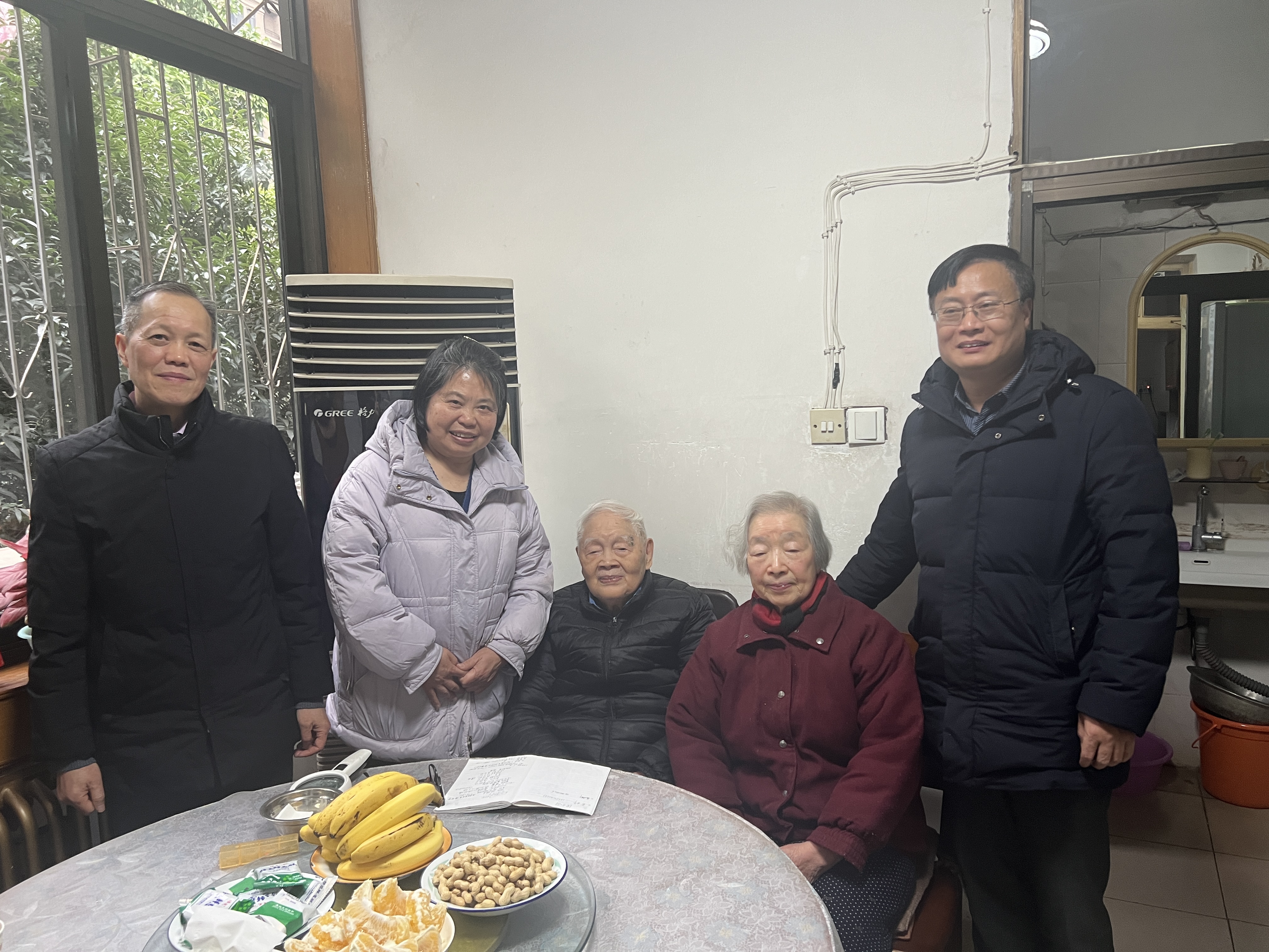 2024年1月17日,腊八节前的长沙寒风料峭,细雨蒙蒙。球友会联合化学化工和生物退休党支部慰问组在公司副经理陈四海及支部书记曾鸽鸣带领下,对公司校内、校外老党员、院士、高龄行动不便、重病患者及长期生病住院的老同志开展了2024春节关怀上门送温暖慰问活动,传递党组织和公司对离退休党员和教职工的关心与问候。