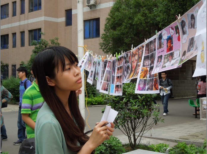 本次“趣味表情大赛”旨在迎接公司第十一届“5.25”心理健康文化节,同时意在拉近两院感情,加强交流。活动面向全校同学征集“趣味表情”,形式有两种,一是真人表情照片,二十手绘漫画表情。所有参赛作品由两院心理办老师和心理部长做一轮筛选后,剩余的进入决赛,参加今天的现场评选活动。活动当天,所有参加评选的照片依次悬挂在帐篷前,编好号码。志愿者们向来往同学发放选票,让热心同学填写,参加投票。所有选票填完后收集起来,通过统计票数评出前五名给予颁奖鼓励。