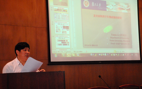 应国家重点实验室邀请,2012年9月20日,复旦大学特聘教授,博士生导师,国家杰出青年科学基金获得者李富友教授来公司讲学,作了题为“发光材料用于生物成像的研究”的学术报告,受到了广大师生的热烈欢迎,杨荣华教授主持学术报告。