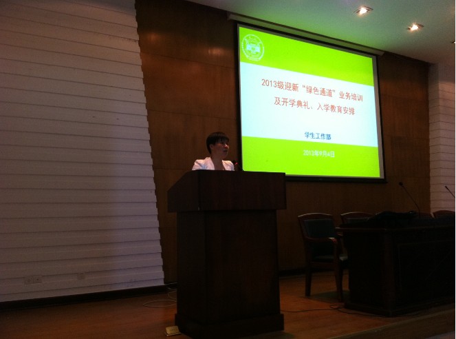 下午3时整,在大家热烈的掌声中培训大会准时召开。首先由13级辅导员赵春先老师发言,在发言中,她表达了对志愿者们不辞辛劳为学弟学妹奉献心力的感谢,同时也希望并相信志愿者们可以尽职尽责地做好迎新工作。随后,公司党委副书记陈义红老师发表讲话。陈书记为大家大致介绍了迎新工作流程和迎新注意事项。陈书记指出,作为化工院的一员,作为学长学姐,志愿者们要注意自己的言行举止,时时刻刻为新生树立榜样,展示化工学子的青春风采。接着,12级辅导员陈晓晖老师更为详细地讲解了迎新流程,再次强调了迎新注意事项,以便让志愿者们在未来3天中将工作有条不紊地顺利进行。