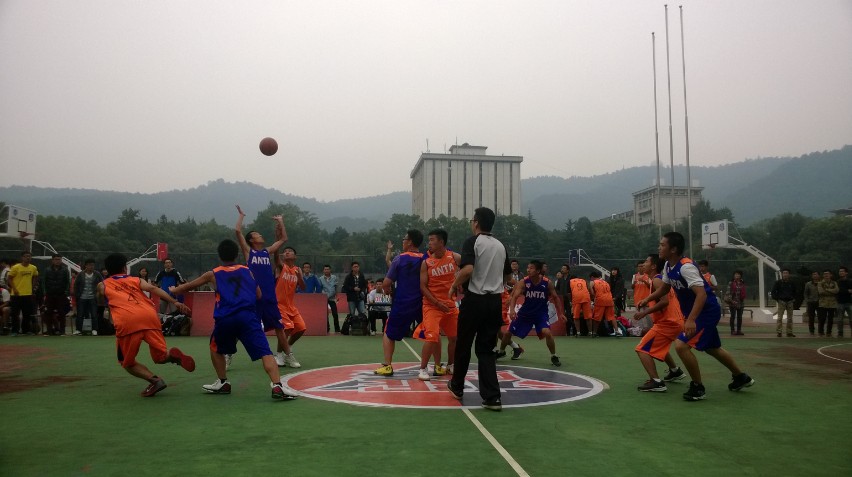 比赛一开始,双方就开始了积极的拼抢,瞬间点燃了场地内观众们的激情。双方啦啦队都在为本方队员卖力地呐喊着,啦啦队的加油声此起彼伏。球场上的队员也都不甘示弱,挥洒汗水,为着自己公司的荣誉而努力。第一节比赛最终以7:10的比分结束,我方化工院篮球队小比分落后。