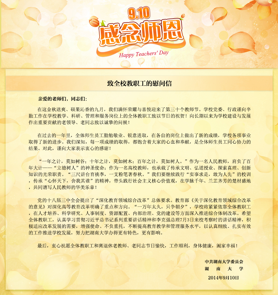集团致全校教职工的慰问信