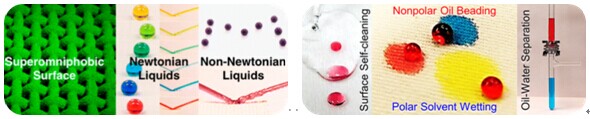 表面润湿性是材料最重要的表面特性之一,涉及到人类科技和社会发展的方方面面,例如材料表面的抗污、抗粘附和自清洁的需求等。特殊的表面润湿性体现在对不同极性、粘度、表面张力的(非)牛顿流体的极端润湿性:超强排斥性或超强亲润性。近年来,特殊的表面润湿性吸引了科学界广泛的兴趣和持续的关注,科学家们开发出了大量的超疏水表面。但是,在表面润湿性能与结构理论关系的构建、表面润湿性的动态智能调控、排斥油污的超轻盈涂层的制备、材料表面的化学异质性及其功能应用等方面仍然存在许多亟待探讨的科学问题。